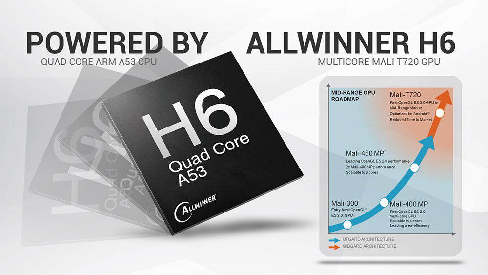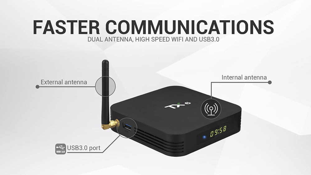 Tanix TX6 - Современная Смарт ТВ приставка на современной операционной системе Android 7.0 под управлением лаунчера Alice UX, более удобная и оптимизированная версия рабочего стола. Устройство имеет в начинке современный и мощный четырехъядерный процессор Allwinner H6 Cortex A53 + видеоускоритель Mali-T720.